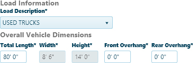In the Load Information area, expand the Description drop-down and choose from the available options then enter the Overall Vehicle Dimensions in the fields provided.
