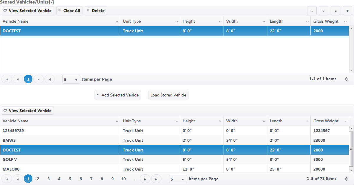 Select a vehicle from the lower table then click the Add Selected Vehicle button.