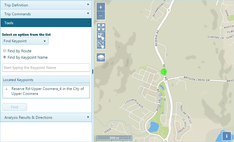 With an application open to the Trip page, access the Tools pane then choose Find Keypoint from the drop-down.