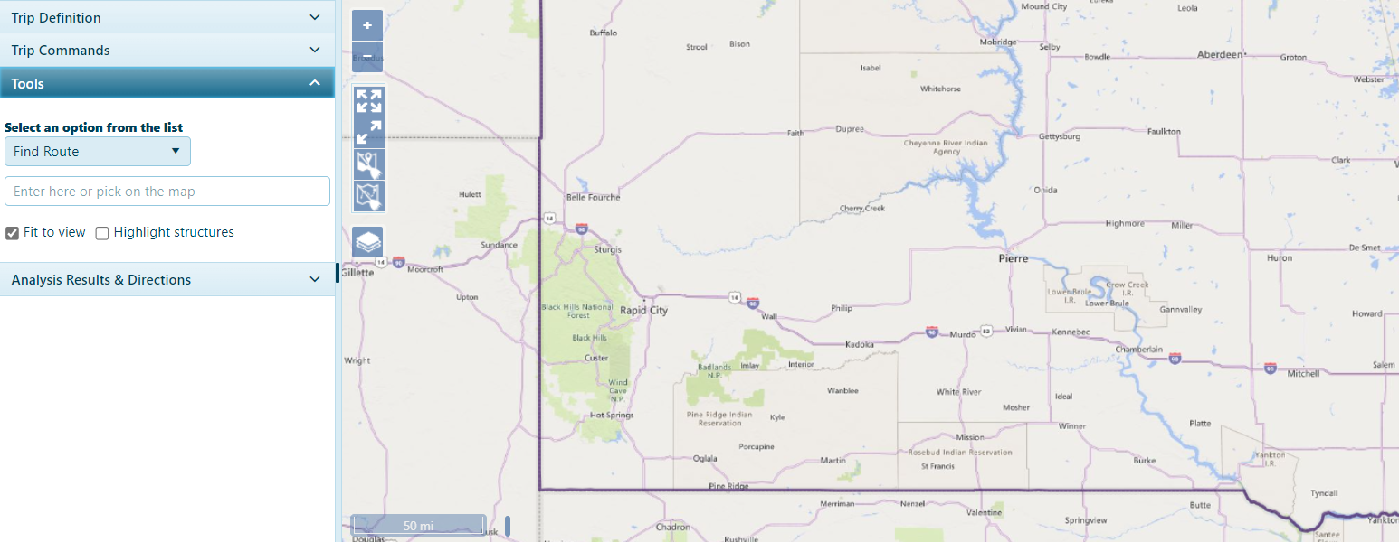 With an application open to the Trip page, access the Tools pane then choose Find Route from the drop-down.