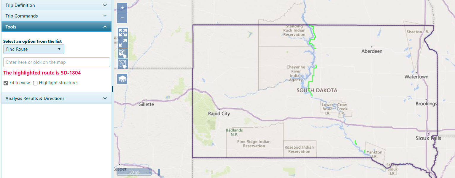 Use the Find Route function to search the database for designated routes and then to present the results of that search on the map.