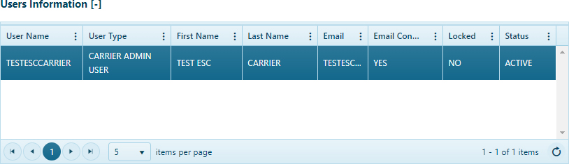 Review the carrier's record in the User Information table. Data is collected and presented here, but the table is read-only.
