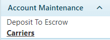 Navigate to the Carrier screen by clicking the My Admin link then choosing Carriers from the Account Maintenance pane.