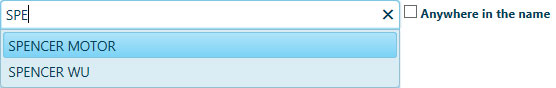 Check the Anywhere in the Name box to have the system find matches that contain the letters for which you are searching within words rather than only at the beginning.