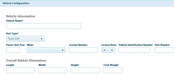 Choose a Unit Type, a Make, and a State from the drop-downs then enter the License Number, VIN, and Unit Number.