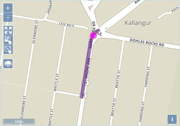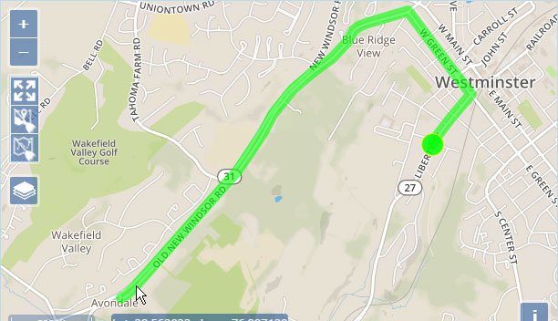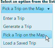 Use the Pick a Trip function to define a route by clicking on the map to select a point of origin, a destination, and if necessary, intermediate locations between the two.