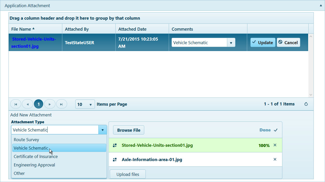Expand the Attachment Type drop-down and choose from the available options or enter a brief description of the files that you wish to attach in the field provided.