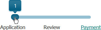 Note: If you need to make changes to the application details, move the progress slider back to the Application page or expand the Go To drop-down on the Features bar and choose Application.